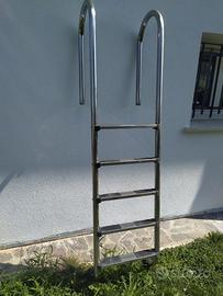 come da foto, a seguito ristrutturazione piscina, vendo scaletta e maniglioni in acciaio inox per piscina, praticamente nuovi, necessitano solo di una lucidata