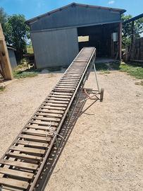 vendo scaletta nastro trasportatore per legna fieno sacchi ecc... molto robusta e resistente motore 220v doppio senso di rotazione altezza 5 metri e 20 lunghezza 6 metri larghezza 60. dotata di ruote per spostamento manuale
