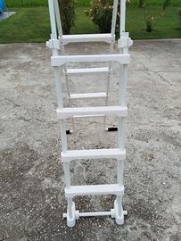 Vendo Scaletta di sicurezza con parte frontale estraibile. Realizzata in acciaio trattato contro la ruggine e la corrosione. 4+4 scalini, piattaforma e blocchi di sicurezza. Per piscine con bordo massimo 135 cm. Nuova mai utilizzata, solo montata portata max 80kg. Senza scatola originale.