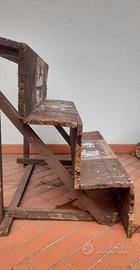 scaletta o comunque tre scalini trovata in in magazzino, tutta in legno da un lato un pochino rovinata. Penso che con un po di lavoro possa diventare molto bella anche da interno..