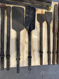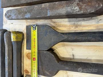 Per inutilizzo vendo set punte e scalpelli per un totale di 22 pezzi a testa esagonale diametro da 23 per demolitore, come da foto usati poco, da foto si vede anche la misura innesto sul demolitore.