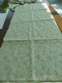 - coppia di teli verdi con fiori e rami, uno di cm. 140 x 60 e l'altro di cm. 260 x 31: euro 8 in tutto
