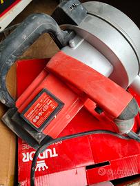 Vendo scanalatore elettrico Tudor da 1700W, ideale per tracce pulite e veloci su muro. ✅ SISTEMA ANTI-POLVERE: Dotato di bocchetta posteriore per il collegamento diretto all'aspirapolvere. Indispensabile per lavorare in interni senza riempire la stanza di polvere e per mantenere la zona di taglio sempre pulita. ✅ GUIDA LASER INTEGRATA: Dispone di un puntatore laser che proietta la linea di taglio sul muro. Questo ti permette di seguire perfettamente il segno ed evitare errori di direzione. ✅ MISURE E REGOLAZIONI DI TAGLIO: L'attrezzo è estremamente versatile grazie alla scala graduata che permette di impostare le misure desiderate: Profondità di taglio regolabile: da 10mm fino a 40mm. Larghezza della traccia: da 14mm a 30 mm (grazie al sistema a doppia lama diamantata da 150mm). Impugnatura ergonomica per un controllo totale durante il taglio orizzontale o verticale. Dischi diamantati inclusi e già montati. L'attrezzo è come nuovo, usato pochissimo, impiegato solo per un piccolo lavoro domestico.
