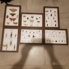Scatola entomologica + insetti preparati e montati su spillo entomologico o cartellino con identificazione.
