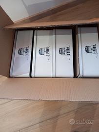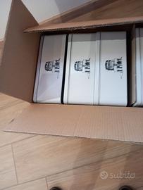 Scatole in latta, per vari usi. Bianche e stemma medusa. Lunghezza 36cm / larghezza 24cm/ altezza 13cm. 4€ al pezzo , 12 € scatola con 4 pezzi. Ho circa 50 scatole