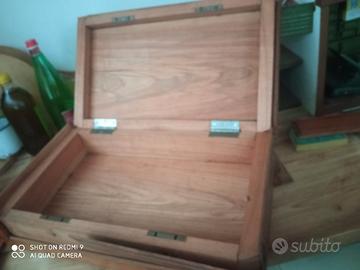 scatola con apertura nascosta, in legno di ciliegio, manca la chiave,ma facilmente reperibile