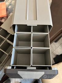 Numero 20 pezzi , scatole di varie misure con scomparti per minuterie o piccoli componenti . Vendibile tutto insieme . Ideale per ordinare banchi di lavoro .