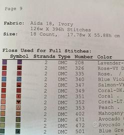 Schema ricamo punto croce Dimensions “ Fours Season Floral” acquistato in formato PDF e scaricato su fogli A4. Lo schema è composto da 10 fogli,schema a colori alta definizione,legenda colori cotone Mouliné DMC. Ottime condizioni.