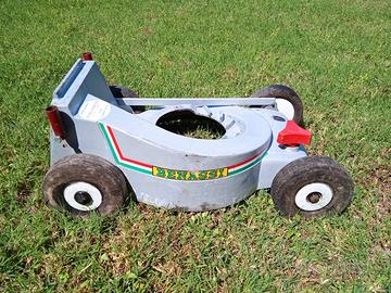 Scocca in alluminio per tosaerba BENASSI completa di ruote e dispositivo per regolare l'altezza di taglio. Era montato un motore a scoppio "TECUMSEN elettronic BVS 1432"