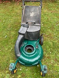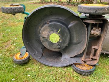 Scocca tagliaerba da 53 cm, con sacco raccolta, ha anche l’avanzamento ma è da mettere a posto! Non spedisco!