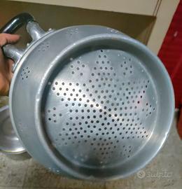 Scolapasta in alluminio, diametro 30 cm, altezza 15 cm, manici 9x8 cm, vintage, anni '60.