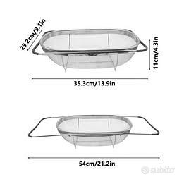 Scolapasta ovale in acciaio inox da 4 qt, scolapasta da sopra il lavello a maglia fine espandibile, scolapasta per lavello da cucina, verdure, filtrare, scolare, sciacquare la frutta (cestello da 4)