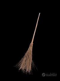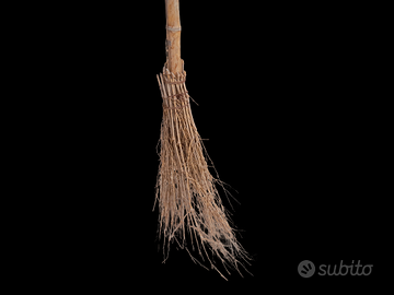 Scopa artigianale con manico in legno e setole in paglia.