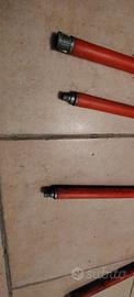 Nr. 2 scovolini di acciaio per pulizia canna fumaria, come nuove, misure 20X20 e 25X25 più nr. 4 aste lunghezza 2 metri cada una, avvitabili alle estremità con le apposite ghiere. Lunghetta totale delle aste mt. 10. Vendo per inutilizzo.