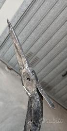 scultura fatta manualmente uccello gru in ferro saldato pezzo a pezzo peso kg 9 alta cm 80 ottimo come arredamento giardino o terrazzo