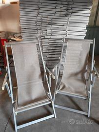Vendo per conto terzi 20 sdrai usati professionali in alluminio con tela traforata di colore grigio Costo al singolo pezzo 30 euro; acquistando tutto il lotto euro 25 al pezzo. No affaristi no perditempo.