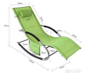 Sedia a dondolo da esterno. Colore verde acceso Portata max 150 kg Mis. 150x65x90