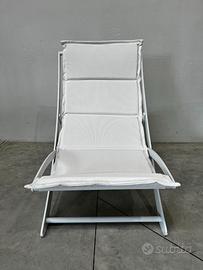 La seduta è realizzata in textilene imbottito, un materiale noto per la sua durabilità e comfort. Grazie alle sue cinque diverse posizioni regolabili, potrete trovare sempre l'angolazione perfetta per rilassarvi.