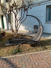 Lettino da giardino o terrazzo in ferro verniciato a forno color antracite, tela traforata e traspirante, corredata da materassino,