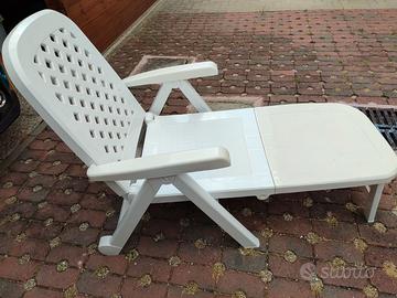 vendo sdraio da giardino in ottime condizioni.La sdraio è in plastica resistente e molto robusta ed è perfettamente richiudubile.Presenta solo qualche leggero segno di usura nella parte poggia gambe,per il resto è perfetta.Le misure sono:113LU X 56 LA X 65 ALTEZZA SPALLIERA