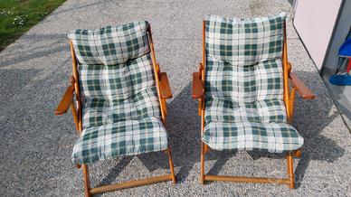 Coppia di poltroncine reclinabili (3 posizioni) e richiudibili. tessuto stampato e struttura di legno verniciato.