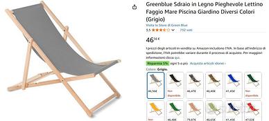 Sdraio classica in faggio Green Blue GB183 - Sdraio in Legno Pieghevole Lettino Faggio Mare Piscina Giardino: