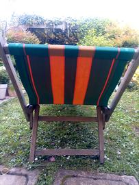 Tipico sdraio da spiaggia in legno, vintage. Da sistemare nella parte inferiore sx la tela, ottimo anche come oggetto d'arredo in giardino o in terrazzo.
