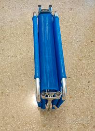 Vendo nuova per inutilizzo sdraio lettino pieghevole, struttura tubolare in alluminio e telo rivestimento textilene traspirante colore blu con cinghie sostegno.
