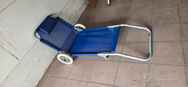Pratico sdraio mare pieghevole con ruote in gomma. all'occorrenza diventa un pratico carrello porta teli e borse.