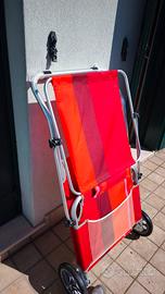 sdraio portatile, pieghevole e con ruote, in tessuto e struttura il alluminio. tetto coprisole regolabile schienale regolabile misure da chiuso 112x62x22 misure del solo lettino in posizione orizzontale 110x52