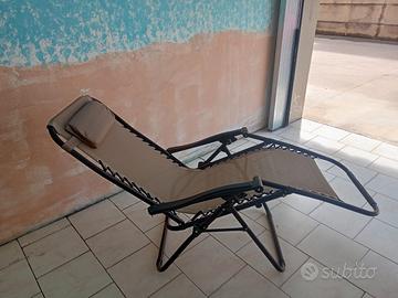 sdraio da esterno colore tortora completa di materassino trapuntato,messo via di bucato.pronto x l utilizzo,usata una sola stagione.