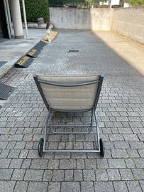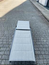 Vendo bellissima sdraio struttuta in alluminio colore grigio e tessuto con imbottitura. Usata veramente poche volte e tenuta veramente bene in ottime condizioni.