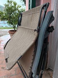 Vendo sdraio con schienale reclinabile e comodo appoggio per le gambe. Ha inoltre il tettino parasole che è molto utile in estate per i sonnellini all’aperto.