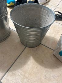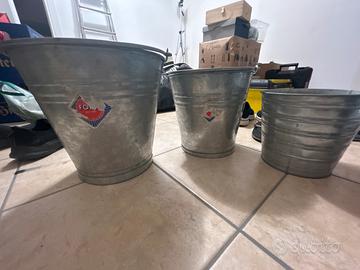 tre secchi in metallo zincato, usati, diametro apertura 32 cm, 29 cm, 23 cm. il più piccolo senza manico. No spedizione. In blocco 30 €, singolarmente 15 €.