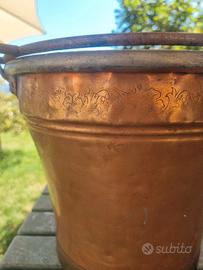 secchio in rame, ottime condizioni, da collezione, utilizzabile per arredamento e giardino
