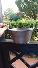 Secchiello secchio Zincato in Metallo colore argento con manico in legno H. 10 cm diam. Ø 23 x 29 cm. nuovo vendo per inutilizzo. Adatto anche come vaso per piante