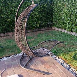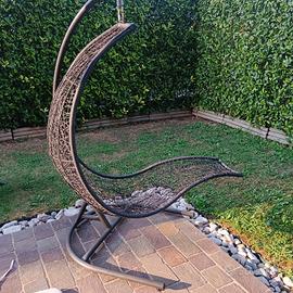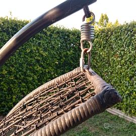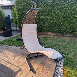 Sedia a dondolo con cuscino rovinato vedi foto ma fermato con fascette e una volta messo il suo cuscino non si vede e si può utilizzare senza problemi