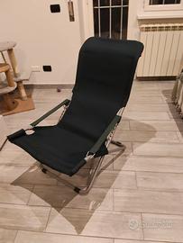 Sedia a sdraio perfettamente integra, mai utilizzata. Tela di colore verde. Seduta regolabile in 4 posizioni.