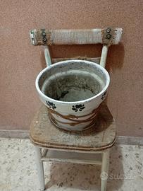 sedia con cerchio centrale con vaso di coccio
