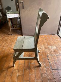Antica sedia in legno con possibilità di usarla come scaletta, ribaltando la seduta. Come Altezza: 94cm Larghezza: 40cm Profondità: 55cm