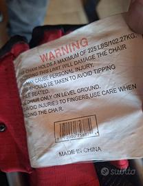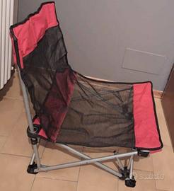 Bellissima sedia da campeggio/pescatore in ottime condizioni. Colore Rosso e Nero. Richiudibile salvaspazio. Misure: Largh.55 / Prof. 609 / Altezza 70/ altezza seduta da terra 25 cm. Solida e resistente fino a 100 KG