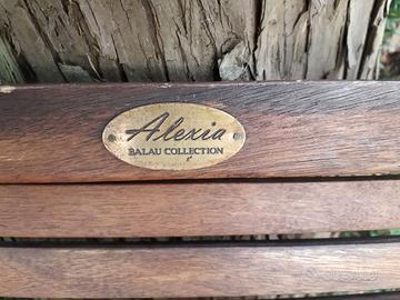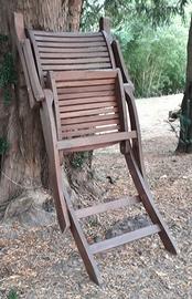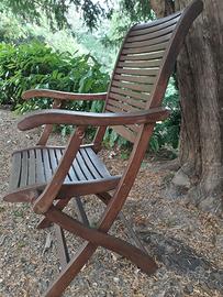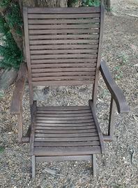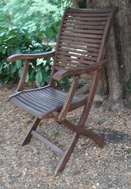 Sedia da giardino in legno tropicale di balau, con braccioli, richiudibile. Larghezza della seduta: 45 cm. Larghezza max (compresi i braccioli): 55 cm. Altezza (aperta): 93 cm. Profondità (aperta): 63 cm.