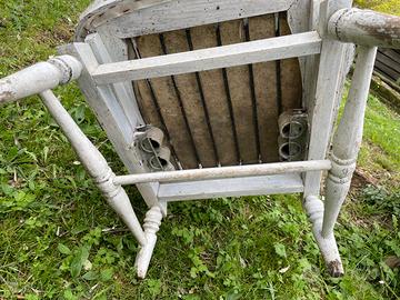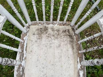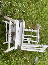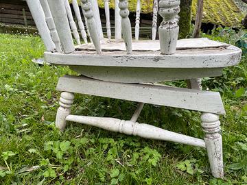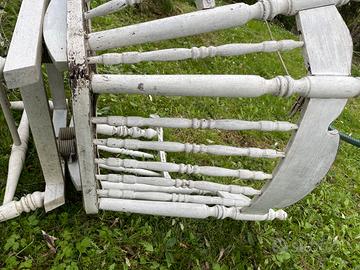 Sedia con molle tipo a dondolo, stile country, da rimettere apposto…ha bisogno di un po di trattamento per il legno magari carteggiata e pitturata… assenza cuscino seduta