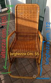 Vendesi sedia dondolo in midollino, misure come da foto, buone condizioni. Cuscini a parte