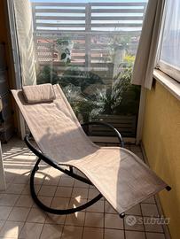 Vendo sedia a dondolo da esterno impermeabile acquistata da Leroy Merlin, in ottime condizioni e perfettamente funzionante. Ha una struttura richiudibile con meccanismo a forbice, quindi occupa pochissimo spazio quando non viene usata. È anche leggera, facile da spostare e da riporre. Si può usare in terrazzo, balcone, veranda o giardino, ed è ideale per momenti di relax all’aperto. Durante l’inverno, grazie alla chiusura compatta, si può anche appendere o riporre facilmente per occupare ancora meno spazio. Caratteristiche: •Tessuto impermeabile. •Struttura robusta e stabile. •Meccanismo a forbice richiudibile. •Molto poco ingombro da chiusa. •Leggera e facile da movimentare. •Adatta per uso esterno. Disponibili 2 pezzi identici, vendibili anche singolarmente. Prezzo riferifito alla singola sedie se vendute in coppia 130€ in totale.