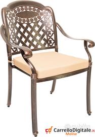 Sedia da giardino in alluminio pressofuso modello Madrid con effetto anticato, design vintage con forme e motivi sinuosi per aggiungere un tocco elegante ad ogni ambiente esterno, che sia un giardino un cortile o una terrazza. Prezzo 90 euro IVA E TRASPORTO INCLUSI Possibilita' di pagare in contanti alla consegna aggiungendo 6 euro Seduta quadrata ampia e comoda dotata di cuscino generosamente imbottito per la massima esperienza di comfort. Poltrona da giardino modello Madrid realizzata in alluminio color bronzo, dal materiale leggero ma robusto, resistente alle intemperie, acqua, vento, raggi UV, ma soprattutto alla ruggine. Questa elegante sedia da giardino con braccioli modello Madrid, esclusivamente lavorata a mano, e' impreziosita da rifiniture che la rendono unica nel suo genere, mentre il particolare intreccio di decori sia sulla seduta che sullo schienale ne risalta la robustezza e lo stile retro'. CARATTERISTICHE * Materiale: Alluminio * Colore: Bronzo * Dimensioni Sedia: 64 cm di lunghezza x 53 cm di larghezza x 92 cm di altezza * Dimensioni cuscino: 45 cm di lunghezza x 45 cm di larghezza x 5 cm di altezza * Altezza seduta da terra: 44 cm * Prodotto gia' assemblato Telefono/Whatsapp: