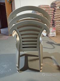 vendo n. 3 sedie in plastica bianche mai usate e tenute sempre in magazzino a 10€ l'una + 4 sedie in ferro verniciatura a caldo verde ottime a 15€ l'una robuste , prezzo non trattabile no spedizione