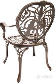 Sedia da giardino in alluminio pressofuso modello Parigi con effetto anticato, design vintage con forme e motivi sinuosi per aggiungere un tocco elegante ad ogni ambiente esterno, che sia un giardino un cortile o una terrazza. Prezzo 109 euro IVA E TRASPORTO INCLUSI Possibilita' di pagare in contanti alla consegna aggiungendo 6 euro Seduta circolare ampia e comoda dotata di cuscino generosamente imbottito che si adatta perfettamente alla forma della sedia, per la massima esperienza di comfort. Poltrona da giardino modello Parigi realizzata in alluminio color bronzo, dal materiale leggero ma robusto, resistente allle intemperie, acqua, vento, raggi UV, e soprattutto alla ruggine. Questa elegante sedia da giardino con braccioli modello Parigi, esclusivamente lavorata a mano, e' impreziosita da rifiniture che la rendono unica nel suo genere, mentre il particolare intreccio di decori sulla seduta sullo schienale e sulle gambe ne risalta eleganza e robustezza sottolineando lo stile retro' CARATTERISTICHE * Materiale: Alluminio * Colore: Bronzo * Dimensioni Sedia: 64 cm di lunghezza x 69 cm di larghezza x 93 cm di altezza * Dimensioni cuscino: 45 cm di lunghezza x 45 cm di larghezza x 5 cm di altezza * Altezza seduta da terra: 40 cm * Prodotto parzialmente assemblato Telefono/Whatsapp: