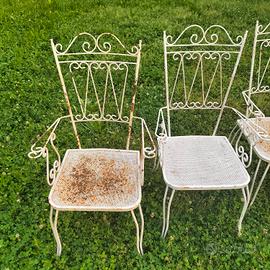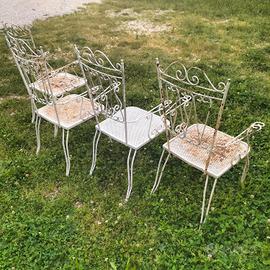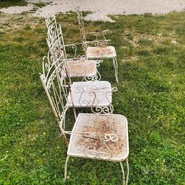 come da foto sedie in ferro lavorato molto belle con segni dovuti al tempo. alcune da sistemare minimamente ma funzionali! da giardino, esterno, arredamento, aree verdi, location ricettive. il prezzo è inteso cadauna! disponibili 4 pezzi. no perditempo. ritiro a mano