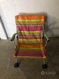 Sedie da mare, lago o balcone pieghevole a righe colorata con borsa che la contiene. Misure:74 cm altezza x 55 cm larghezza seduta .